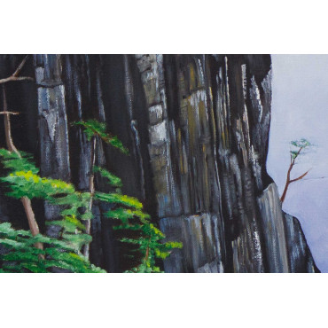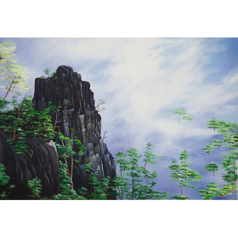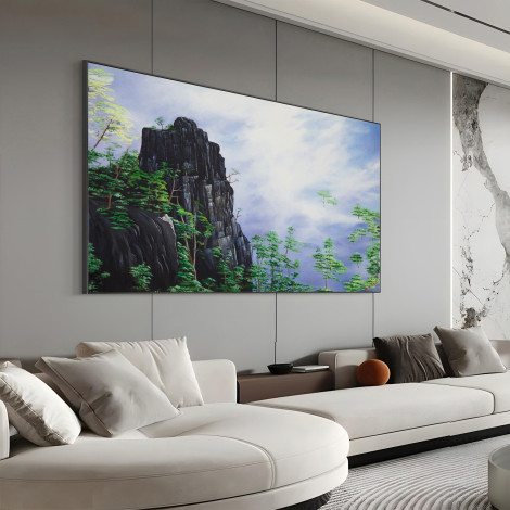 Bring home the serene grandeur of nature with “The King of Loneliness”, a stunning canvas oil painting that captures the silent power of towering cliffs against a dreamy sky. The bold, dark mountain stands as a symbol of strength and solitude, surrounded by lush green pine trees that add life, freshness, and balance to the composition. Soft clouds drift across the sky, creating a harmonious contrast between stillness and movement, earth and heavens. The artist’s meticulous brushwork highlights every rock texture and every gentle wave of mist, inviting you into a world of calm reflection. Perfect for your living room, office, or meditation space, this artwork not only beautifies your wall but also inspires a sense of inner strength, resilience, and peace. A timeless masterpiece for collectors and art lovers alike.