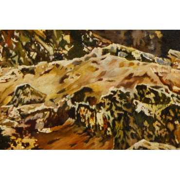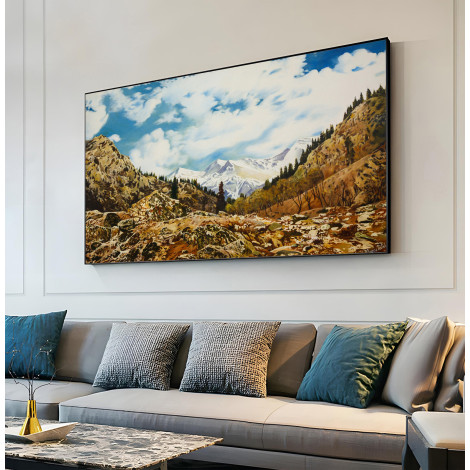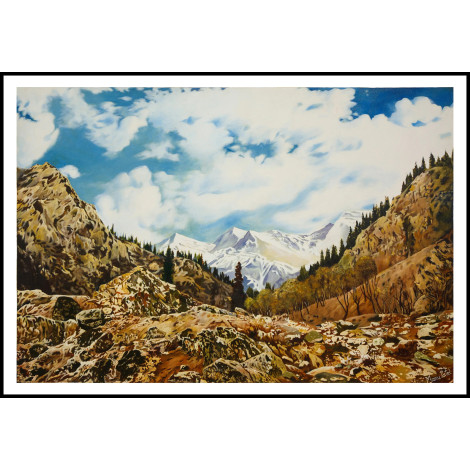 Experience the grandeur of the Himalayas with “Mountain Speaks”, an oil painting on canvas that reflects both natural beauty and unshakable strength. The rugged brown terrain and towering peaks resemble an army-like structure, symbolizing discipline, resilience, and endurance. Snow-covered mountains under a vast blue sky add a touch of serenity, while the rocky foreground evokes the spirit of determination. Perfect for those who admire both nature and strength, this artwork brings a sense of courage, stability, and timeless beauty into your home or office.