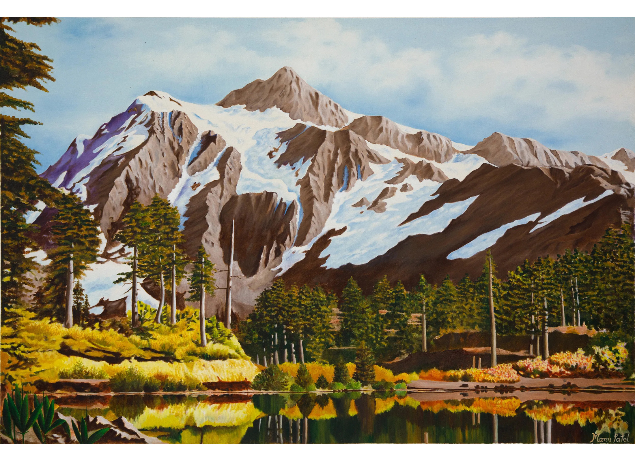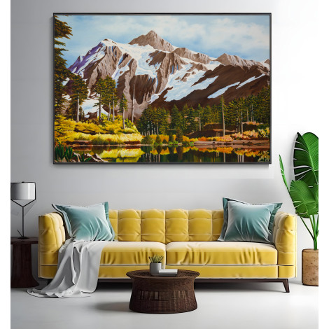 Bring the serene beauty of nature into your home with this stunning canvas oil painting, “Silence of Nature.” The artwork captures a majestic snow-capped mountain rising above a lush green forest, beautifully mirrored in the still waters below. The play of earthy browns, pure whites, and deep greens, combined with soft blue skies, evokes a sense of calm and timeless tranquility. Each brushstroke reflects the grandeur of untouched landscapes, making it a perfect piece for nature lovers and art collectors alike. Whether displayed in a living room, office, or bedroom, this painting creates a refreshing ambiance that inspires peace and harmony. Add this breathtaking masterpiece to your collection and let the power of nature’s silence uplift your space.