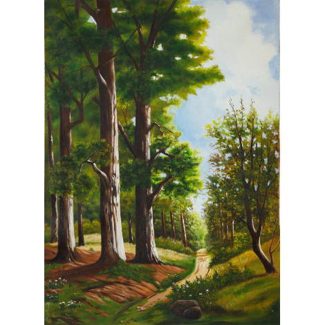 Forest path oil painting