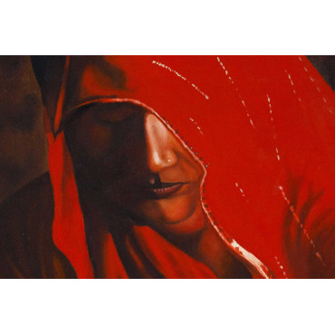 Red saree oil painting