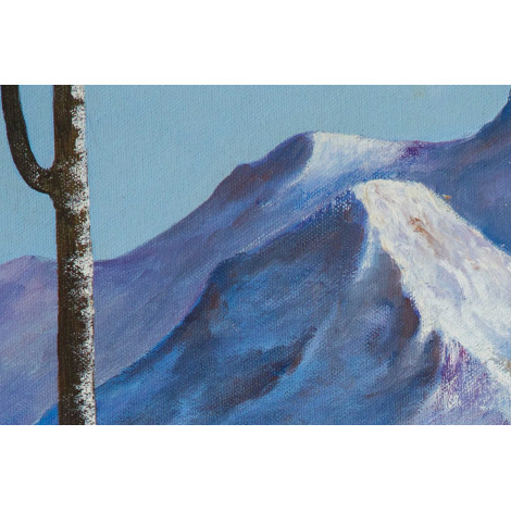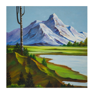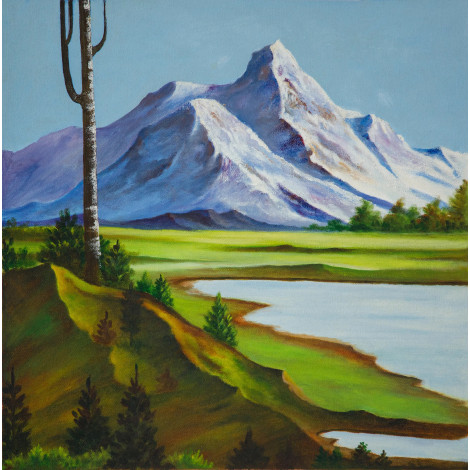 This breathtaking oil on canvas painting captures the awe-inspiring contrast between majestic snow-capped mountains and the tranquil stillness of a serene lake. The artist masterfully blends shades of icy whites, deep blues, and lush greens, creating a vivid balance of strength and peace. The rugged peaks rise proudly against a clear blue sky, symbolizing resilience and grandeur, while the reflective lake below radiates calm and harmony. Painted with bold strokes and soft gradients, the artwork highlights the natural beauty of untouched landscapes and evokes a sense of freedom, adventure, and inner peace. Ideal for adding elegance and depth to your living room, office, or study, this masterpiece is more than décor—it’s an invitation to escape into nature’s timeless beauty.