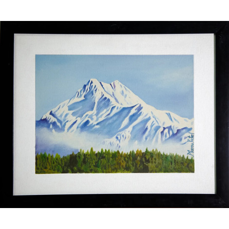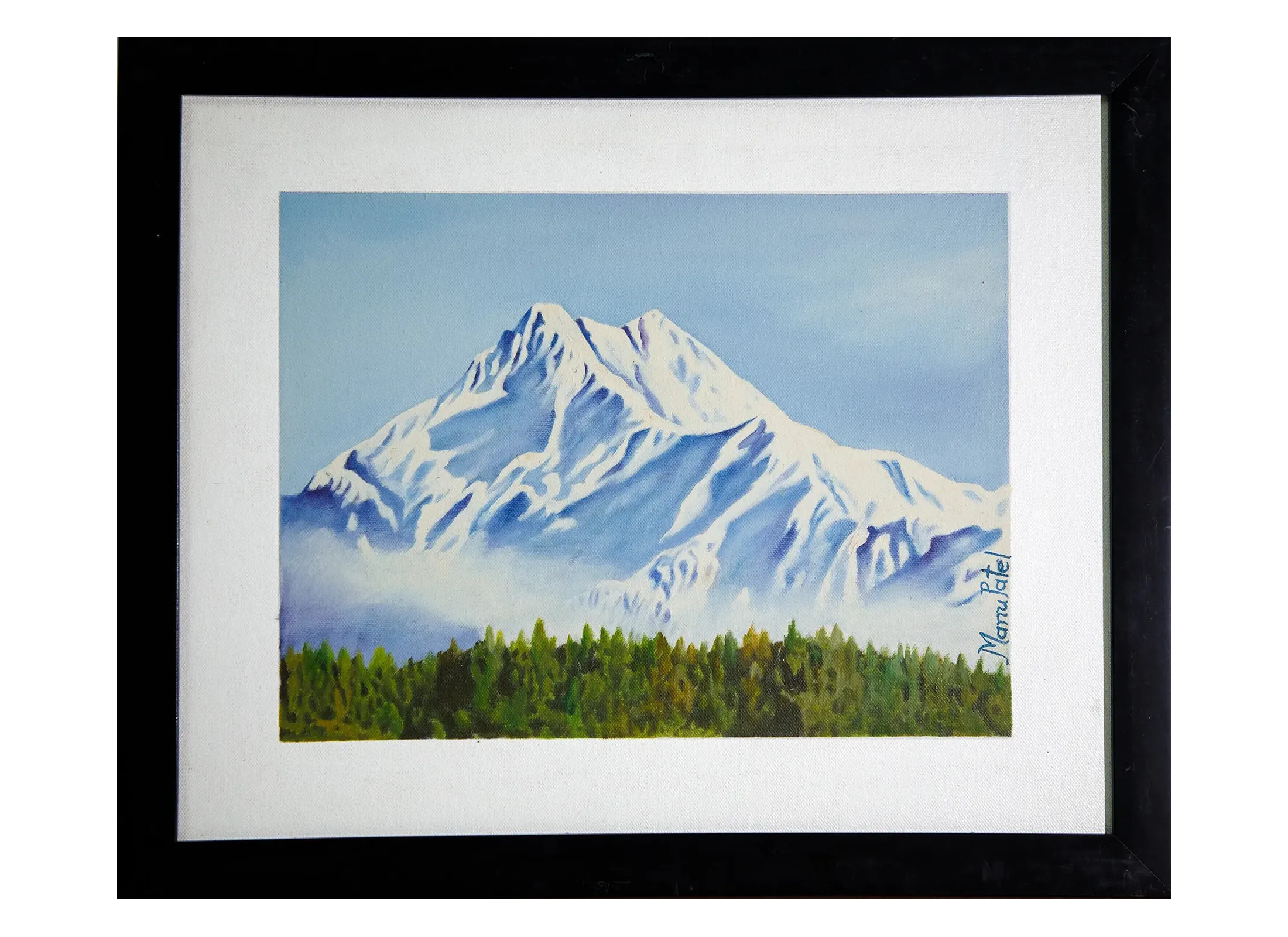 Bring the serene beauty of nature into your home with this stunning canvas oil painting, featuring a breathtaking snow-covered mountain rising gracefully above a dense green forest. The crisp white peaks blend seamlessly into the soft blue sky, evoking a sense of calm, purity, and grandeur. The lush greenery at the base contrasts beautifully with the icy summits, symbolizing harmony between strength and tranquility. Hand-painted with intricate detailing, this artwork captures the raw essence of untouched landscapes, making it a timeless piece for your living room, office, or gallery wall. Perfect for nature lovers, art collectors, and anyone who wishes to add a touch of peace and inspiration to their space.