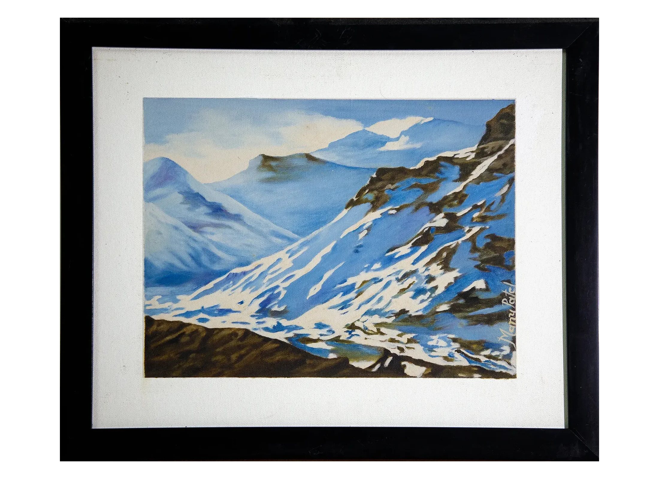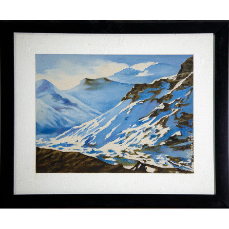 Bring the serene charm of snow-covered peaks into your space with Sweet Snow, a breathtaking canvas oil painting. This artwork captures the majestic beauty of towering mountains draped in white snow and glowing shades of blue. The brushstrokes blend cool tones with earthy textures, creating a stunning contrast that mirrors nature’s purity and strength. Perfect for modern, rustic, or minimal interiors, this painting evokes feelings of calmness, adventure, and inspiration. Whether placed in a living room, study, or office, it transforms the atmosphere into one of peace and grandeur. Sweet Snow is more than just wall decor—it’s an artistic journey into the quiet power of the Himalayas.