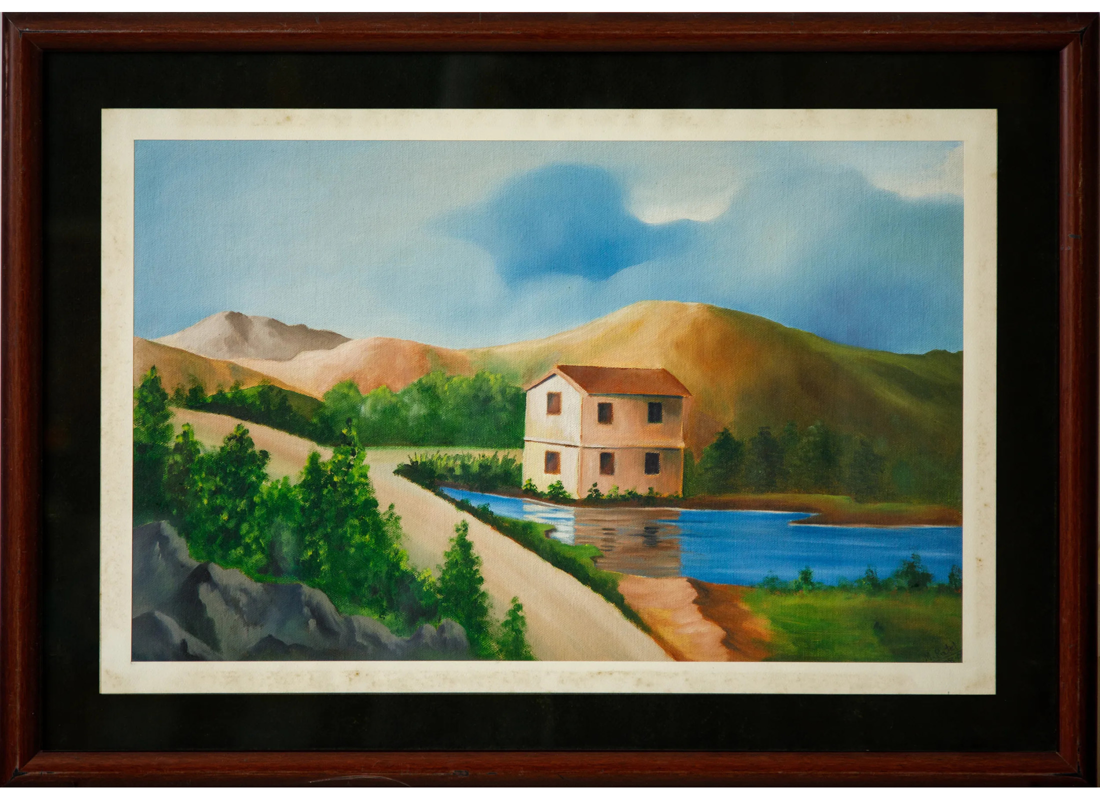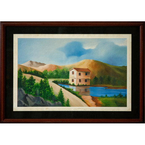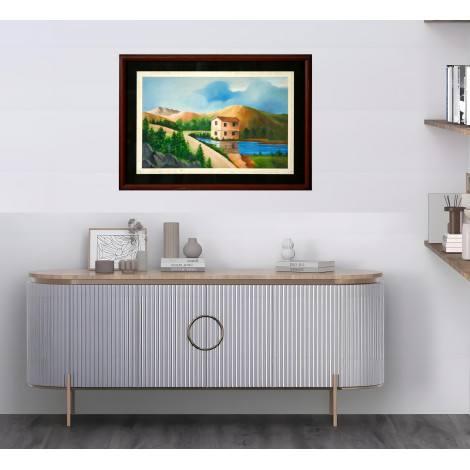 Step into a world of calm beauty with “Down The Road”, a mesmerizing canvas oil painting that captures the charm of countryside living. The artwork features a peaceful two-story house nestled beside a shimmering blue lake, surrounded by lush greenery and rolling golden hills. The pathway leading to the home symbolizes a journey toward serenity and simplicity, evoking a sense of nostalgia and peace. The harmonious blend of earthy browns, refreshing greens, and tranquil blues creates a soothing atmosphere that will enrich any living space. Perfect for home, office, or gifting, this landscape painting reflects both natural beauty and emotional depth, making it a timeless piece of art that inspires relaxation and warmth.