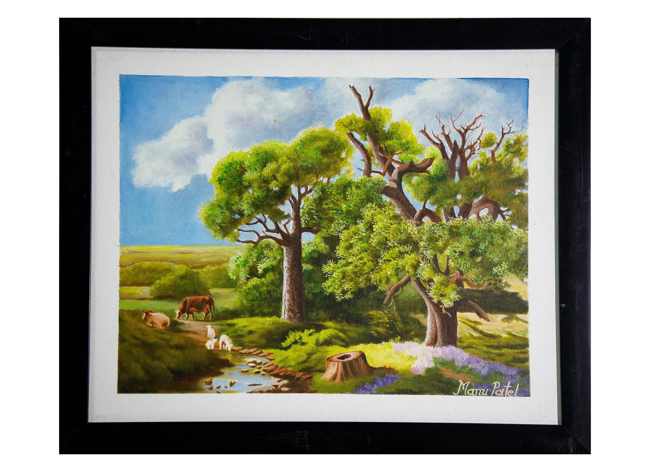 Celebrate the beauty of nature’s rebirth with “Spring Awakening Landscape”, a stunning canvas oil painting that captures the essence of spring. Lush green trees sway under a bright blue sky, while a serene meadow welcomes grazing animals near a sparkling stream. The vibrant tones of green, earthy browns, and soft floral shades create a refreshing sense of life and harmony. Painted in fine detail with smooth brushstrokes, this artwork beautifully blends realism with artistic charm. Perfect for home décor, office spaces, or gifting, this masterpiece invites calmness, positivity, and a deep connection with nature. Add this painting to your collection and bring the joy of spring into your living space.