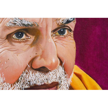 यह अद्भुत कैनवास ऑयल पेंटिंग महंत स्वामी की दिव्य आभा को सुंदरता से प्रदर्शित करती है। गहरे रंगों और सूक्ष्म ब्रश स्ट्रोक्स से बनाई गई यह कलाकृति उनकी शांति, विनम्रता और आध्यात्मिकता को जीवंत रूप में दर्शाती है। गहन दृष्टि, शांत मुखाकृति और भगवा वस्त्र उनकी आंतरिक साधना और भक्ति की झलक प्रस्तुत करते हैं। पृष्ठभूमि का गहरा लाल रंग चित्र की गरिमा को और बढ़ाता है। यह पेंटिंग किसी भी घर, ध्यान कक्ष या कला संग्रह में एक आध्यात्मिक ऊर्जा का संचार करती है। भक्तिमय वातावरण बनाने और प्रेरणा देने के लिए यह कलाकृति अत्यंत उपयुक्त है।