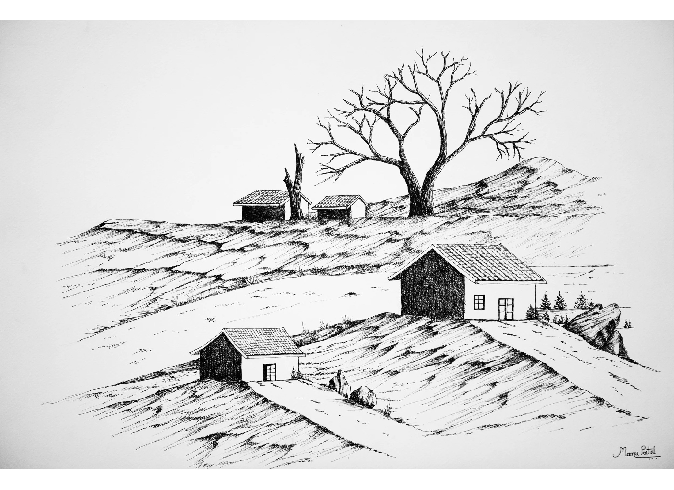 #VillageArt #SketchArt #WallDecor #RuralLife #MinimalistArt #LineArt #CountrysideVibes #RusticCharm #ArtCollectors #IndianArt